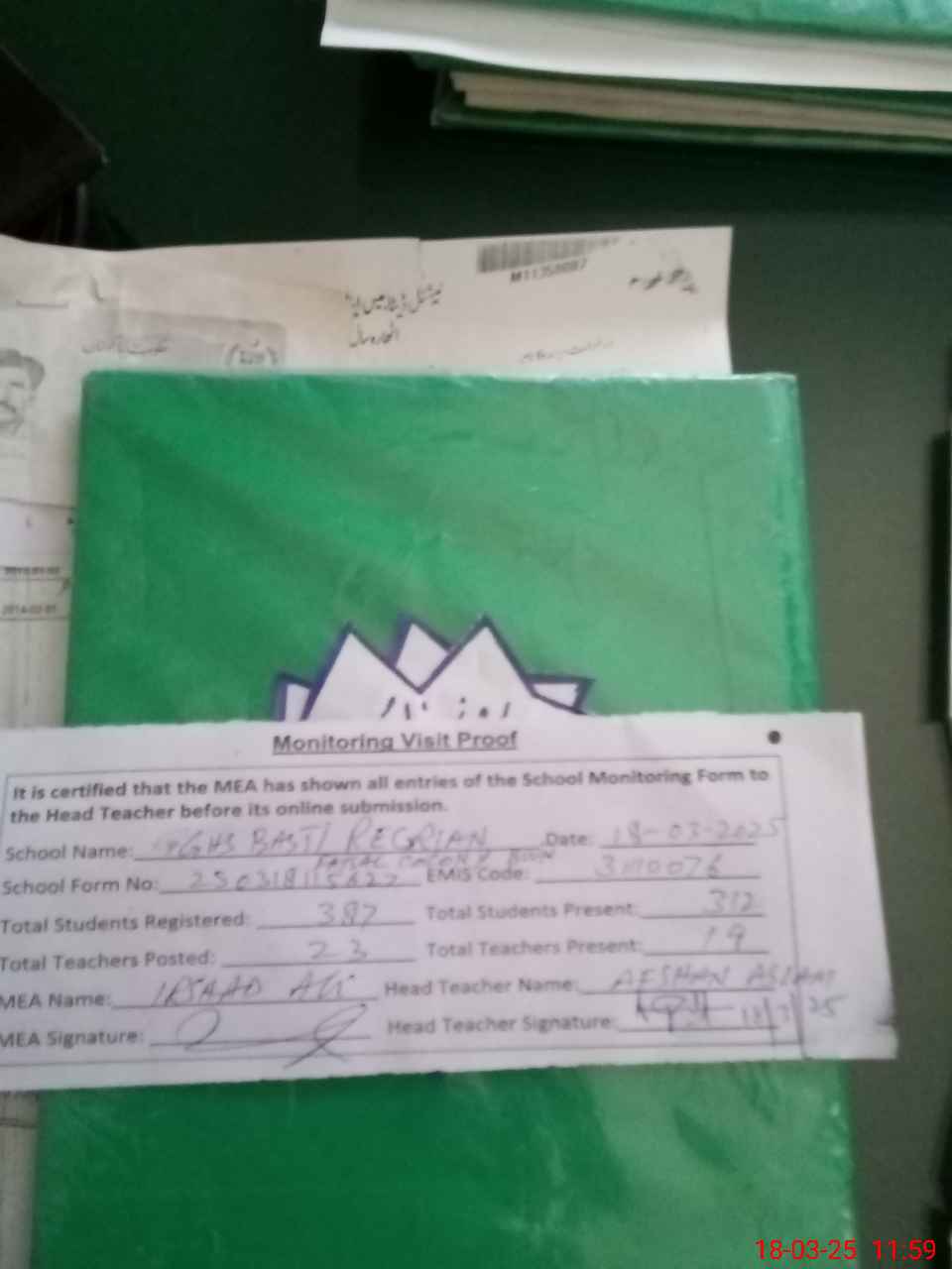 | EMIS Code: 31110076 | Name of School: GGHS BASTI REGRAN FAISAL COLONY (BWN) | |||