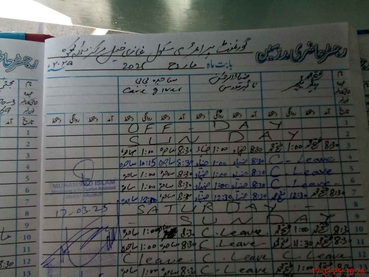 | Name: FA**** MU**** Designation: (School Headmaster's/Headmistress's) PST/PTC/JV Phone/Cell Number: 03**** |