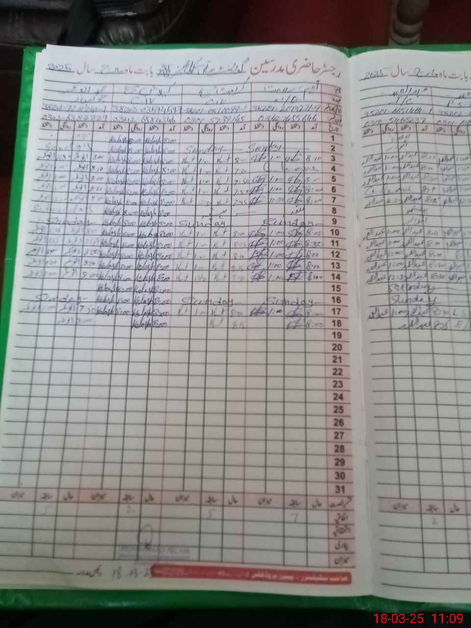 | CNIC | Full Name | Designation | R/C | Absence During Last Calender Month |