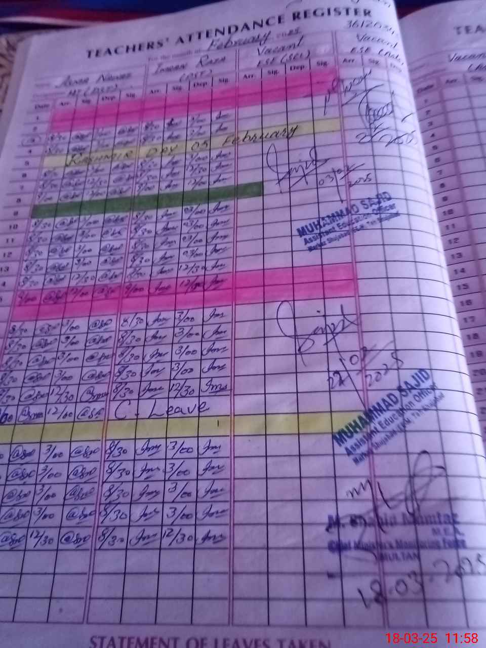 | District: MULTAN | Tehsil: SHUJA ABAD | Markaz: SHUJABAD - MALE | Level: Primary | |