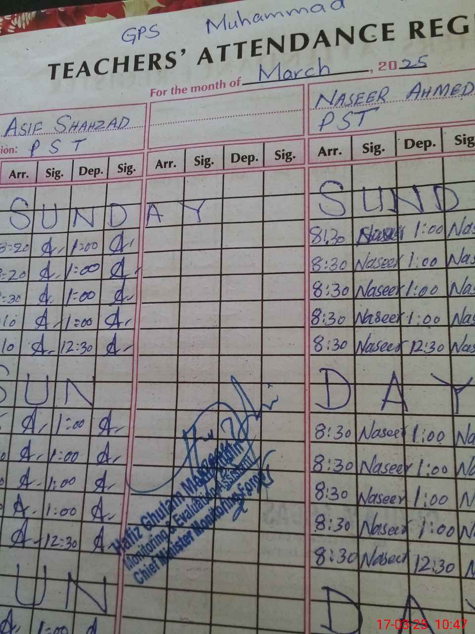 | Name: Na**** Ah**** Designation: (School Headmaster's/Headmistress's) PST Phone/Cell Number: 03**** |