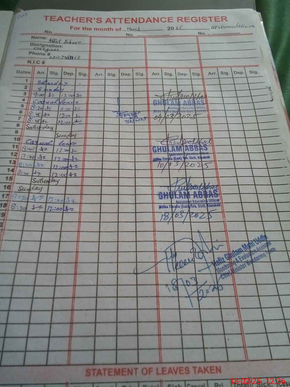 | Name: AT**** MU**** Designation: (School Headmaster's/Headmistress's) PST Phone/Cell Number: 03**** |