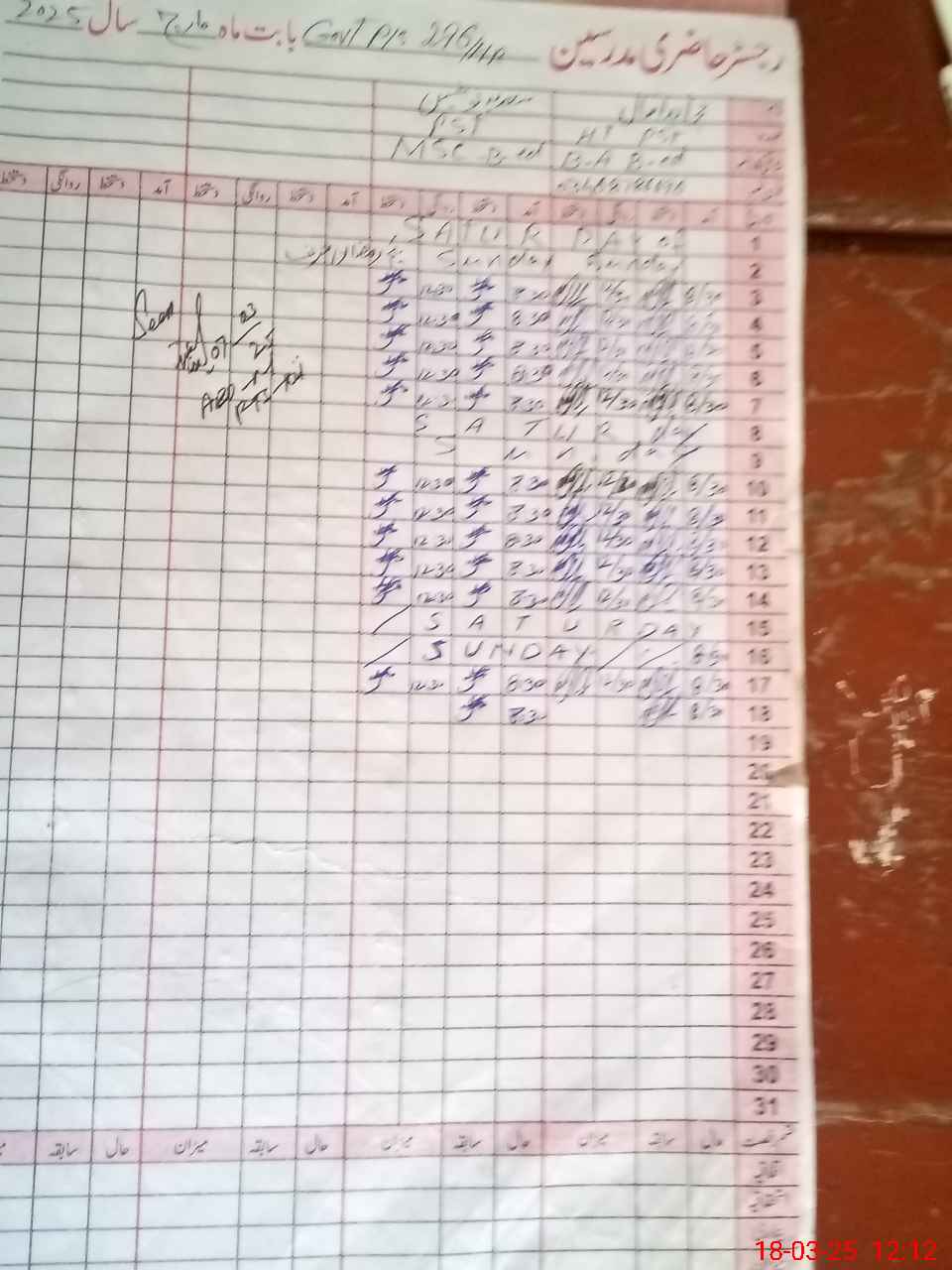 | CNIC | Full Name | Designation | R/C | Absence During Last Calender Month |