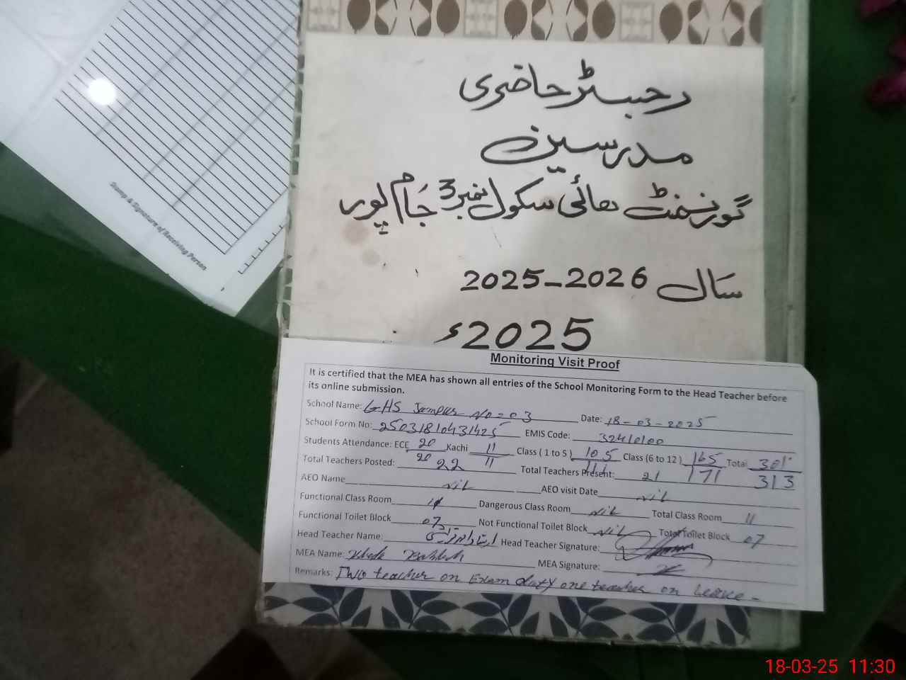 | EMIS Code: 32410100 | Name of School: GHS JAMPUR NO. 3 | |||