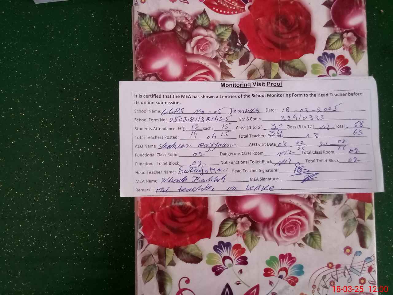 | EMIS Code: 32410333 | Name of School: GGPS JAMPUR CITY NO. 5 | |||