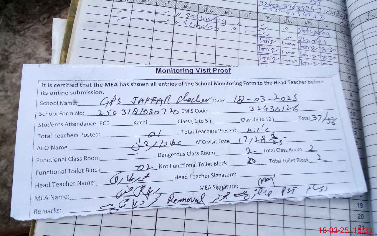 | EMIS Code: 32430126 | Name of School: GPS JAFFAR CHACHAR | |||