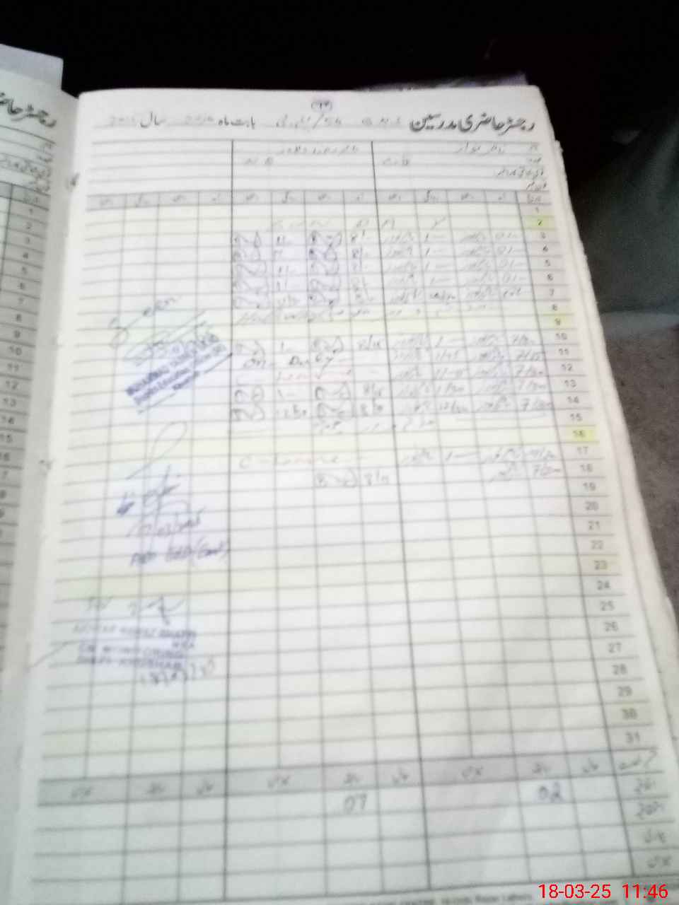 | CNIC | Full Name | Designation | R/C | Absence During Last Calender Month |