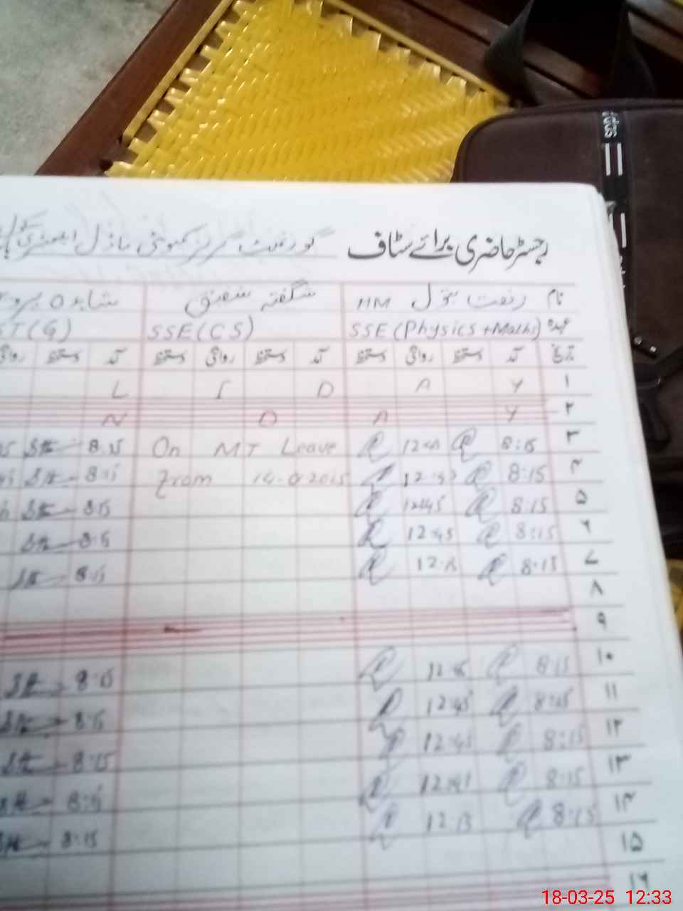 | Leave | Duty | Absent | Maternity | Medical | Ex- Pak |