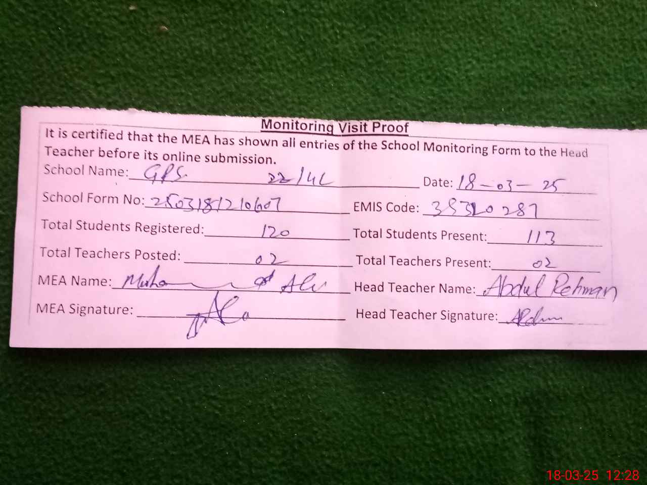 | EMIS Code: 39320287 | Name of School: GPS CHAK 22/4-L | |||