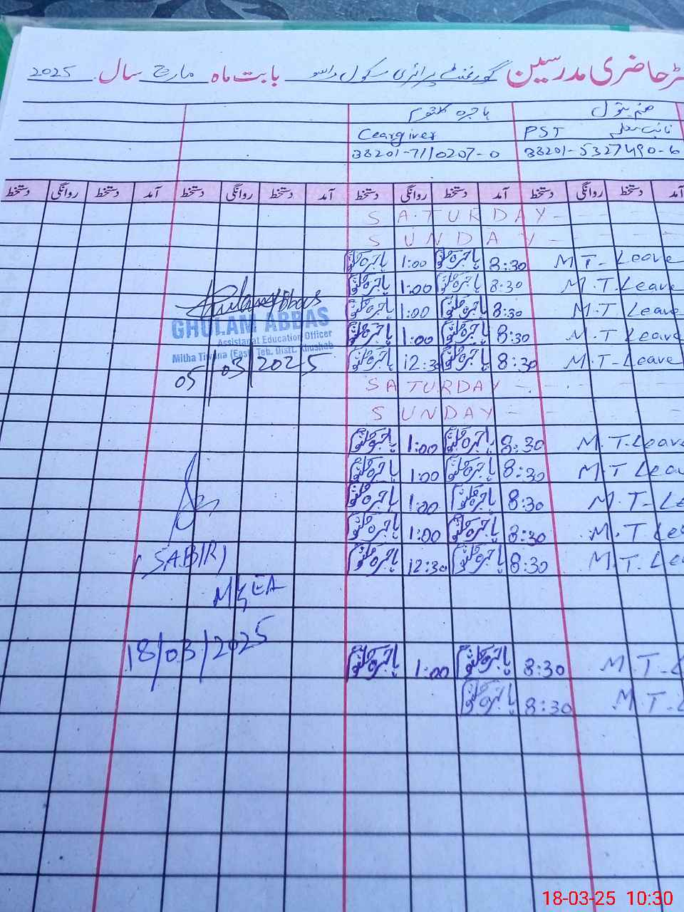 | Name: MId**** Designation: (School Headmaster's/Headmistress's) PST/PTC/JV Phone/Cell Number: 03**** |
