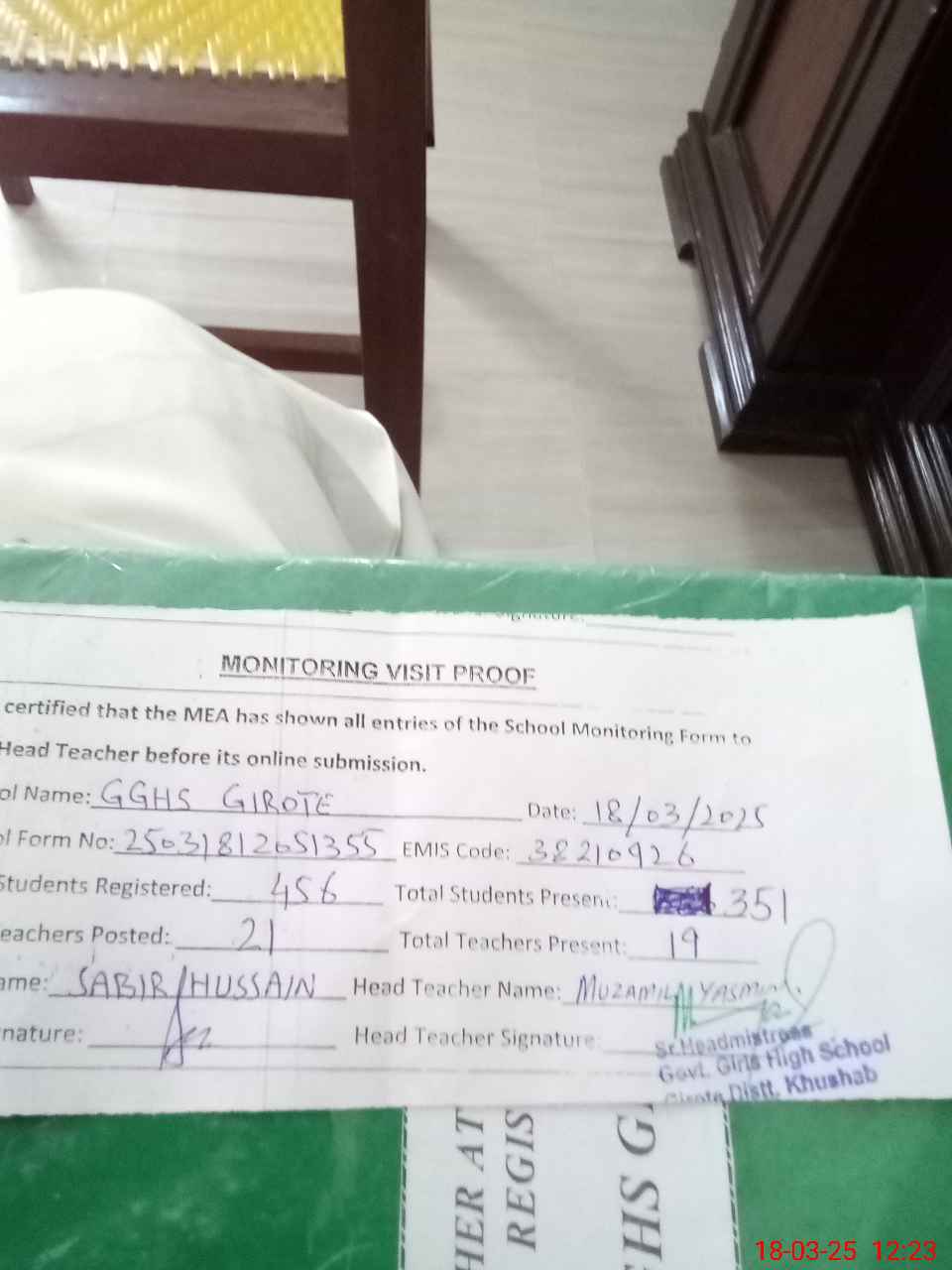 | EMIS Code: 38210926 | Name of School: GGHS GIROTE KHUSHAB | |||