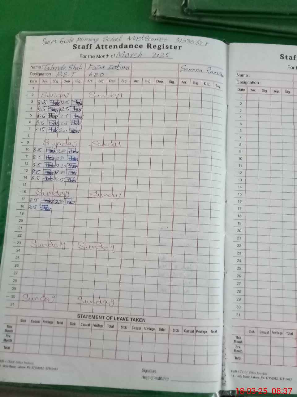 | Name: Ta**** Sh**** Designation: (School Headmaster's/Headmistress's) PST/PTC/JV Phone/Cell Number: 03**** |