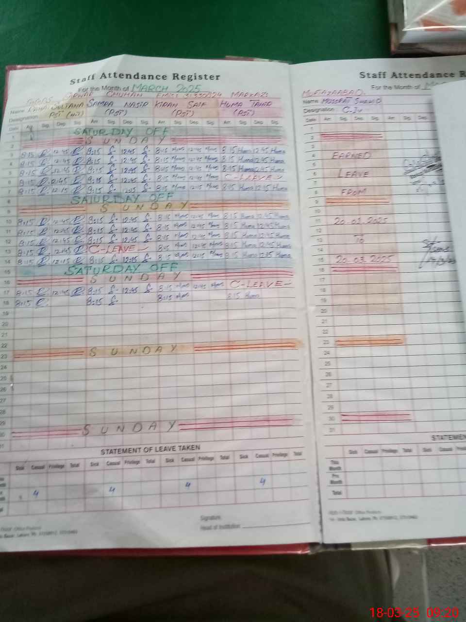 | Leave | Duty | Absent | Maternity | Medical | Ex- Pak |