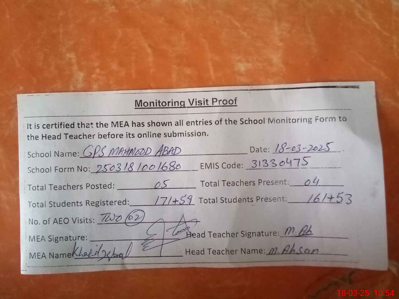 | EMIS Code: 31330475 | Name of School: GPS MAHMOOD ABAD | |||