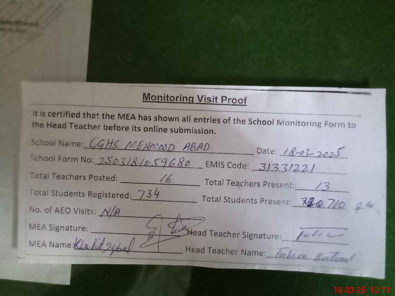 | EMIS Code: 31331221 | Name of School: GGHS MEHMOOD ABAD | |||