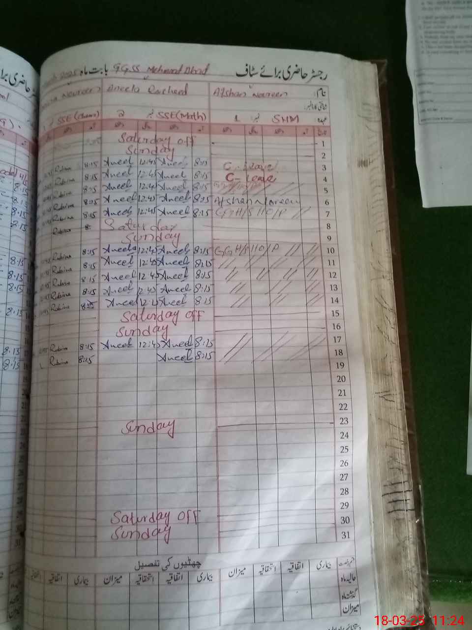 | 31**** | Pe**** Ak**** | 1 | 2 | 0 | 0 | 0 | 0 | 0 | 0 | 0 | 2 | Exam Duty | |