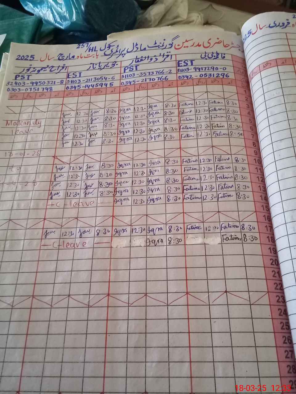 | Leave | Duty | Absent | Maternity | Medical | Ex- Pak |