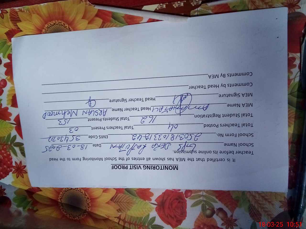| Certified that this School was Inspected by the Undersigned MEA/DMO Today and the Information Stated Above is as Per Record. | |||||