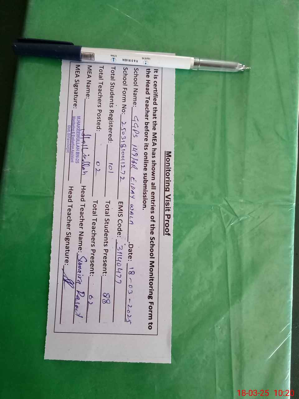 | EMIS Code: 31140477 | Name of School: GGPS 149/6-R EIDAY WALA | |||
