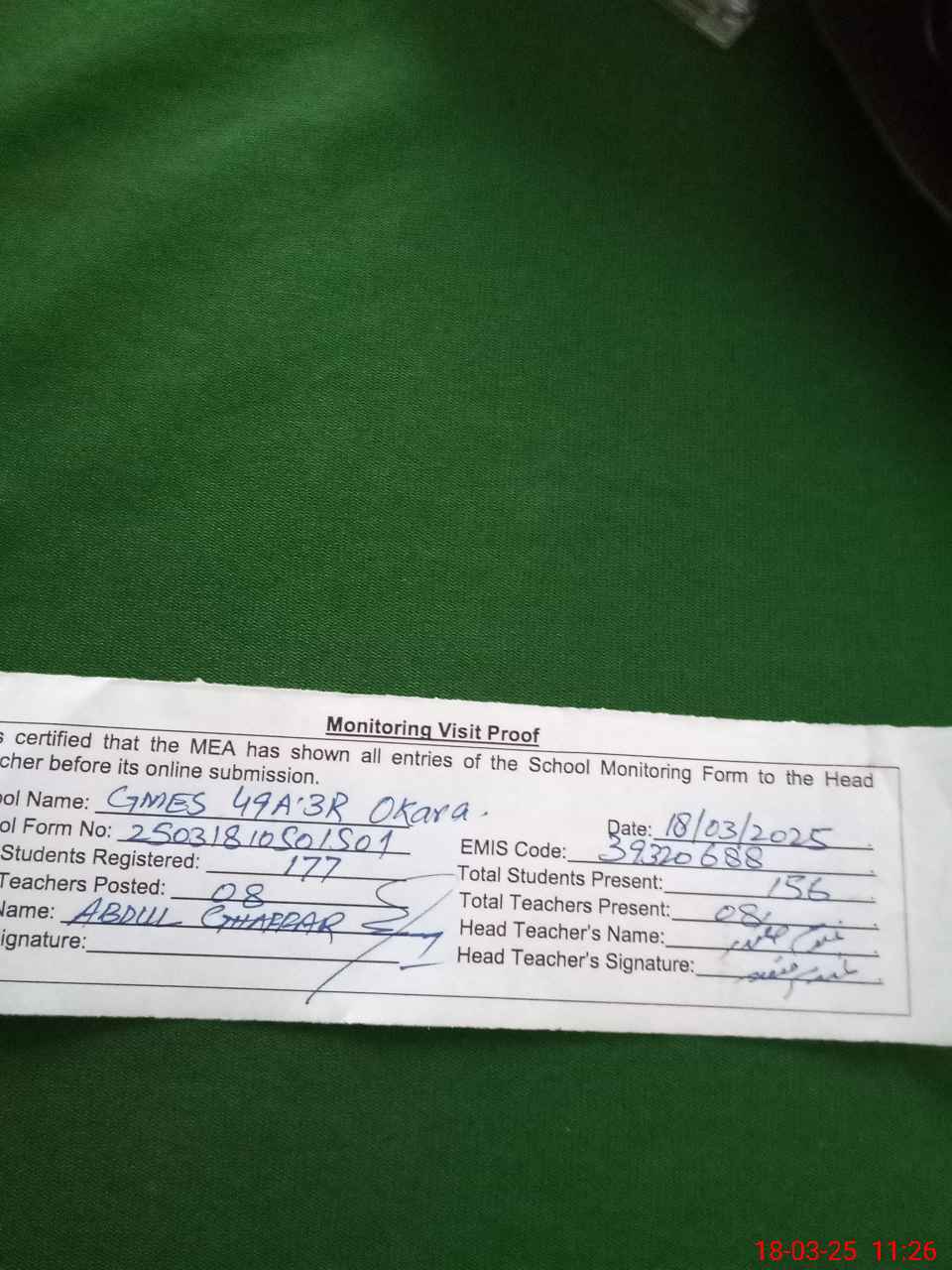 | EMIS Code: 39320688 | Name of School: GMES 49-A/3-R | |||