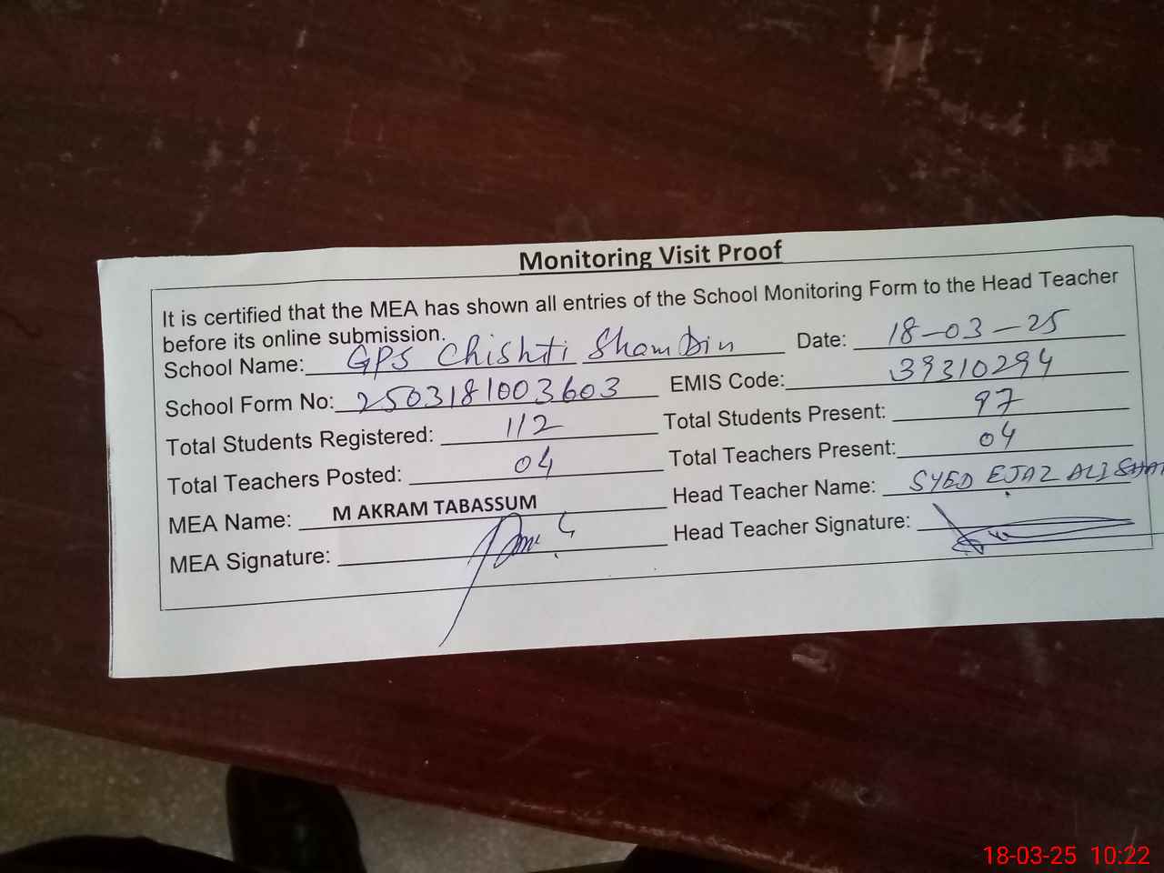 | EMIS Code: 39310294 | Name of School: GPS CHISHTI SHAM DIN | |||