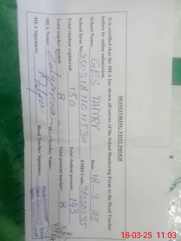 | EMIS Code: 38220235 | Name of School: GES TAITRI | |||