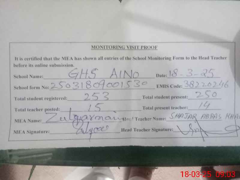 | EMIS Code: 38220246 | Name of School: GHS AINO | |||