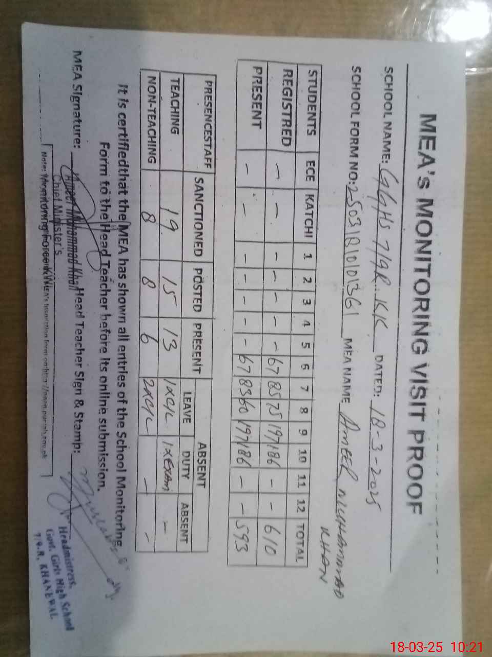 | EMIS Code: 36420053 | Name of School: GGHS 7/9-R, KACHA KHUH | |||