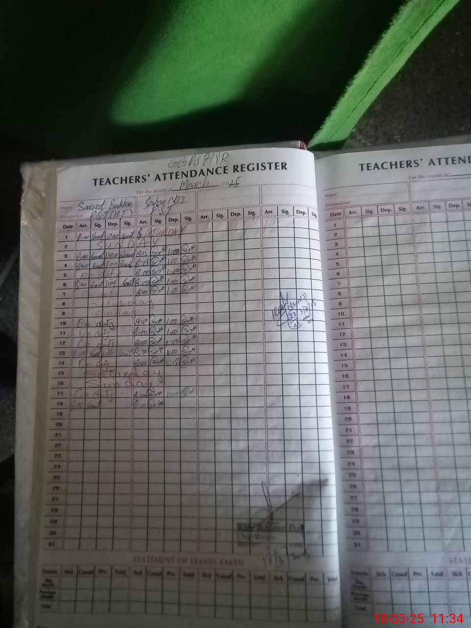 | Name: SA**** BU**** Designation: (School Headmaster's/Headmistress's) PST Phone/Cell Number: 03**** |
