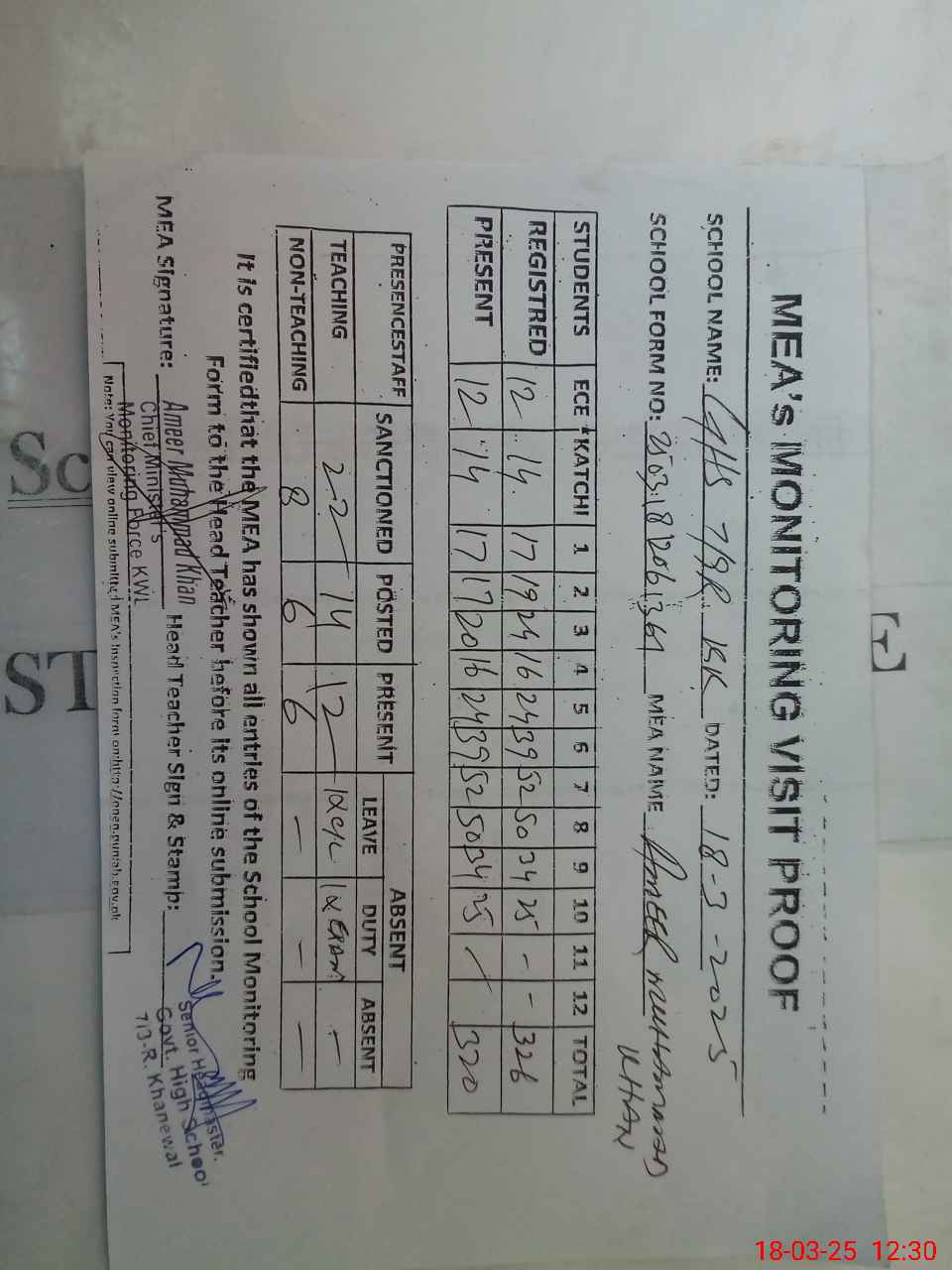 | EMIS Code: 36420023 | Name of School: GHS 7/9-R, KACHA KHUH | |||