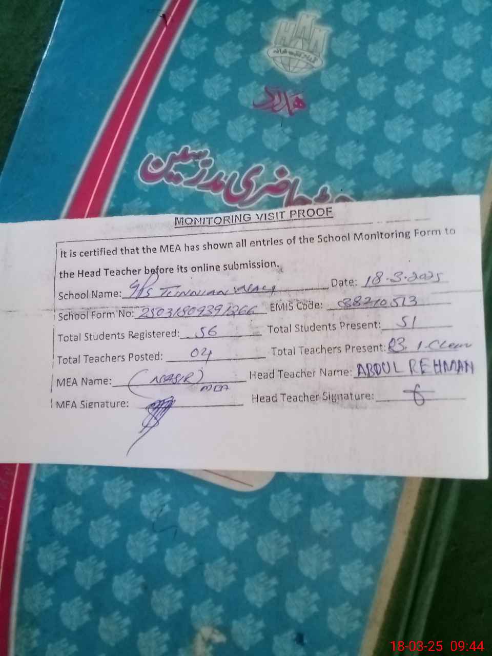 | EMIS Code: 38210513 | Name of School: GPS TUNNIAN WALI | |||