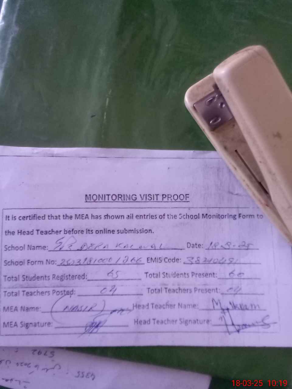 | EMIS Code: 38210491 | Name of School: GPS DERA KALWAL | |||