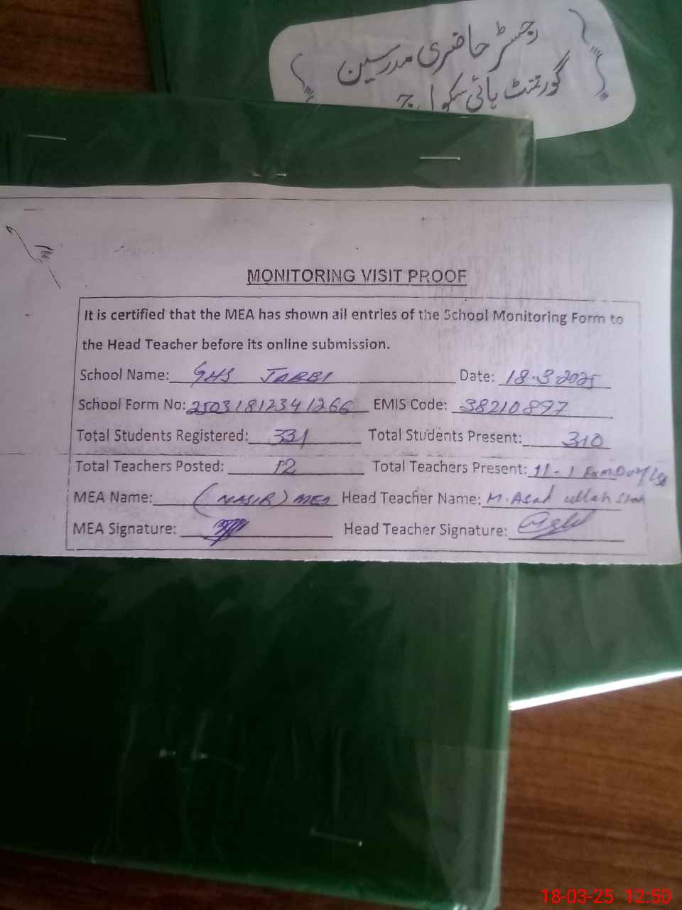 | EMIS Code: 38210897 | Name of School: GHS JABBI | |||