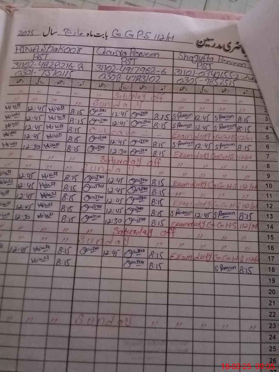 | Name: Sh**** Pe**** Designation: (School Headmaster's/Headmistress's) PST Phone/Cell Number: 03**** |