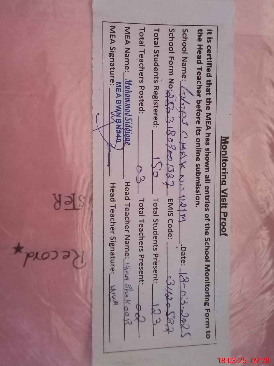 | EMIS Code: 31120582 | Name of School: GGPS CHAK NO. 112 MURAD | |||