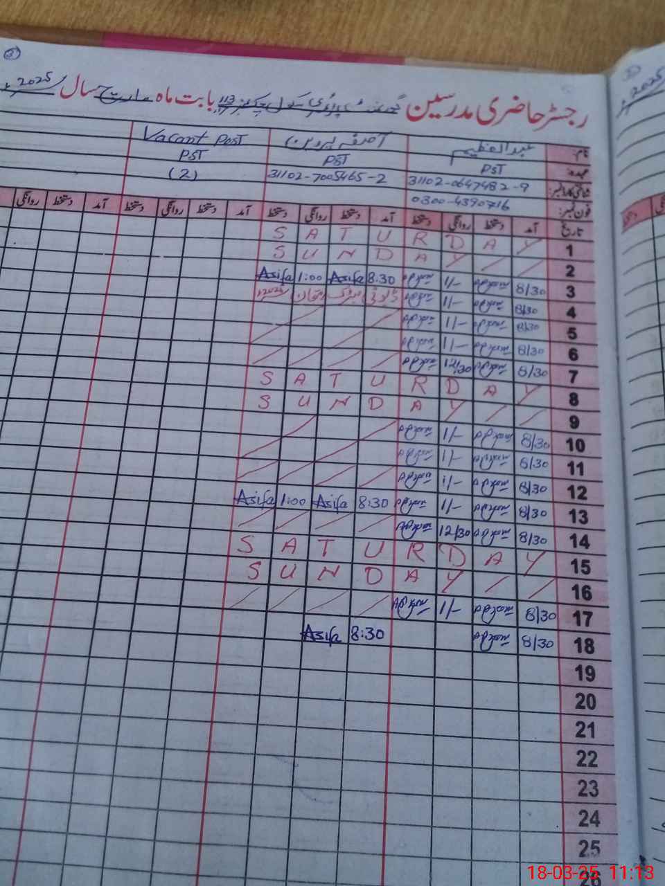 | Name: AB**** AZ**** Designation: (School Headmaster's/Headmistress's) PST Phone/Cell Number: 03**** |