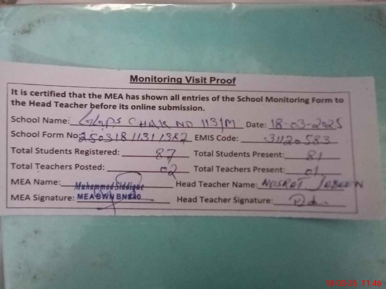| EMIS Code: 31120583 | Name of School: GGPS CHAK NO. 113/M | |||