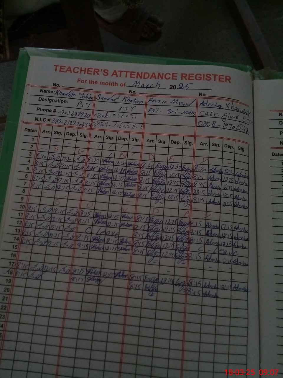 | Name: Kh**** Ta**** Designation: (School Headmaster's/Headmistress's) PST/PTC/JV Phone/Cell Number: 03**** |