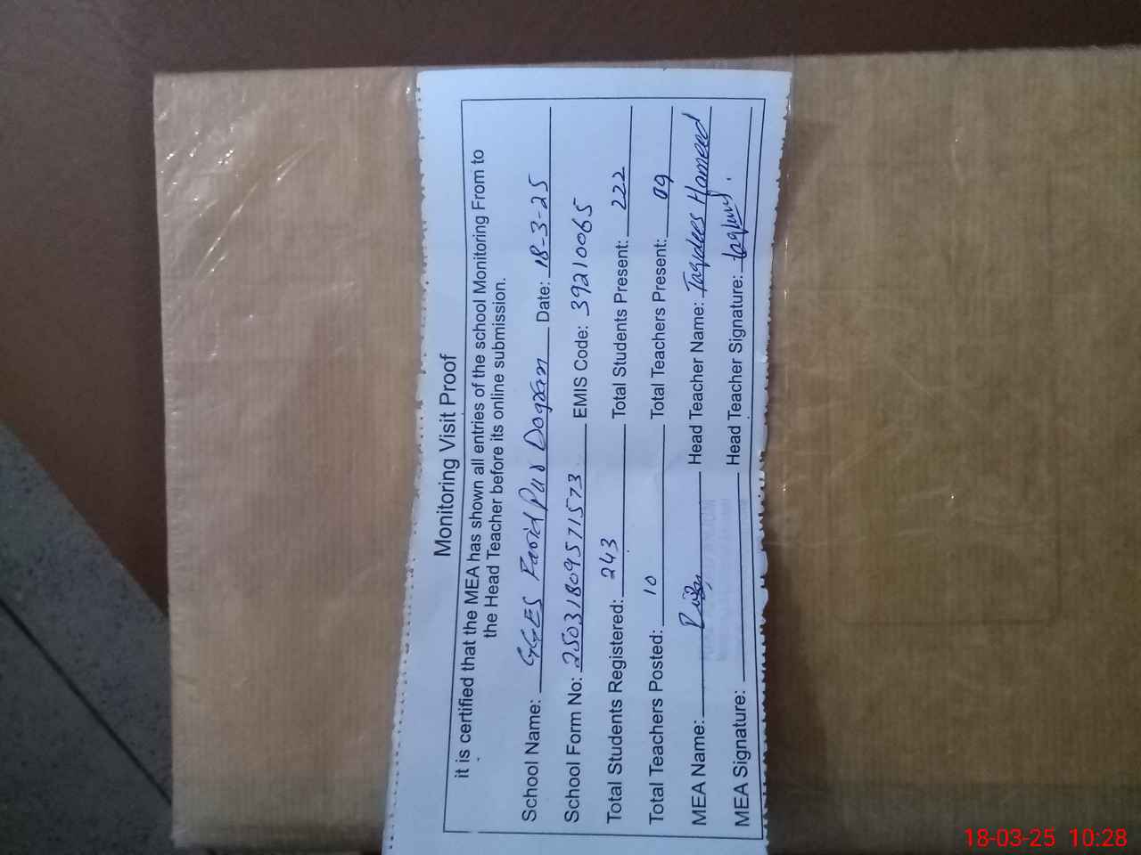 | Certified that this School was Inspected by the Undersigned MEA/DMO Today and the Information Stated Above is as Per Record. | |||||