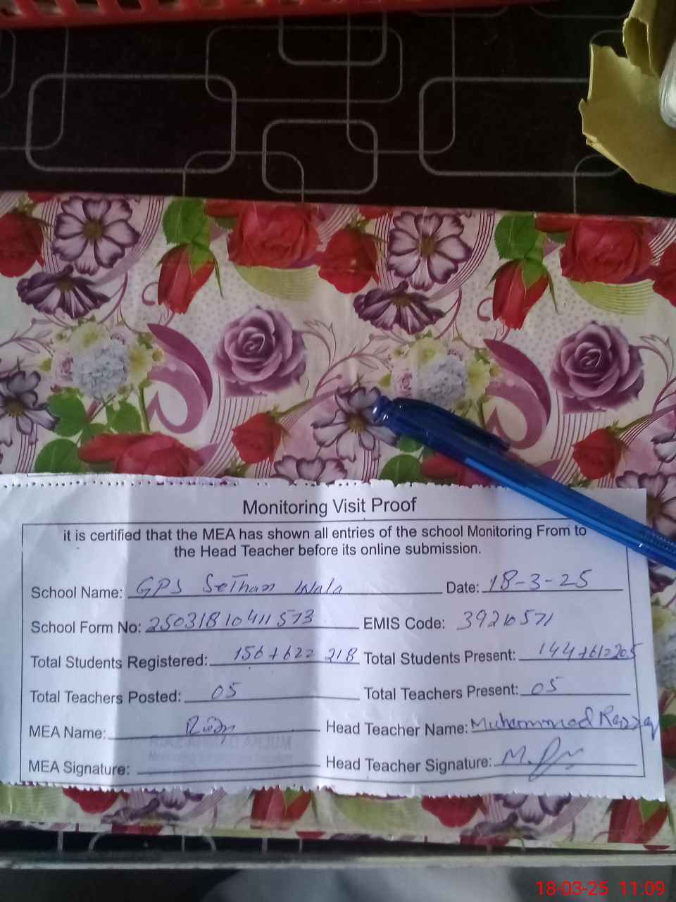 | EMIS Code: 39210571 | Name of School: GPS SETHAN WALA | |||