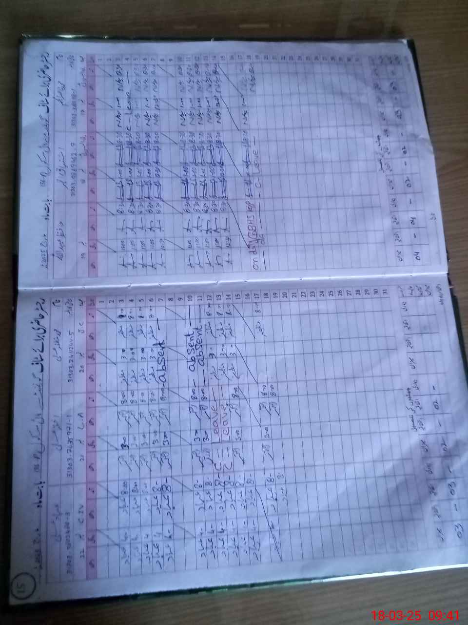 | CNIC | Full Name | Designation | R/C | Absence During Last Calender Month |