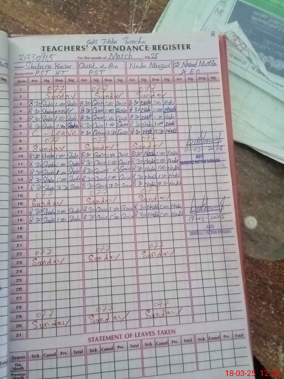 | Attendance Register | Head Teacher | MEA with School | Visit Proof |