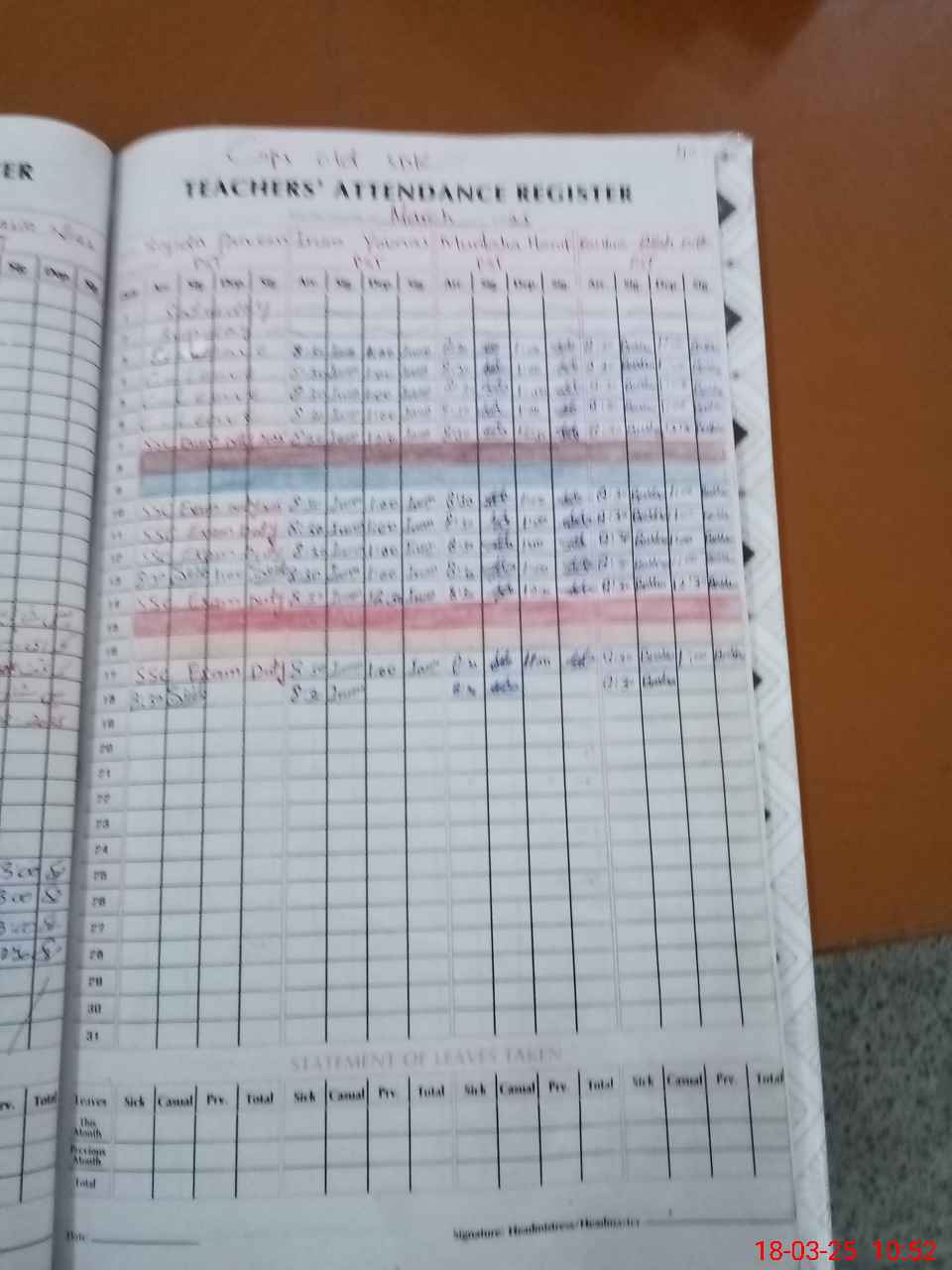 | Leave | Duty | Absent | Maternity | Medical | Ex- Pak |