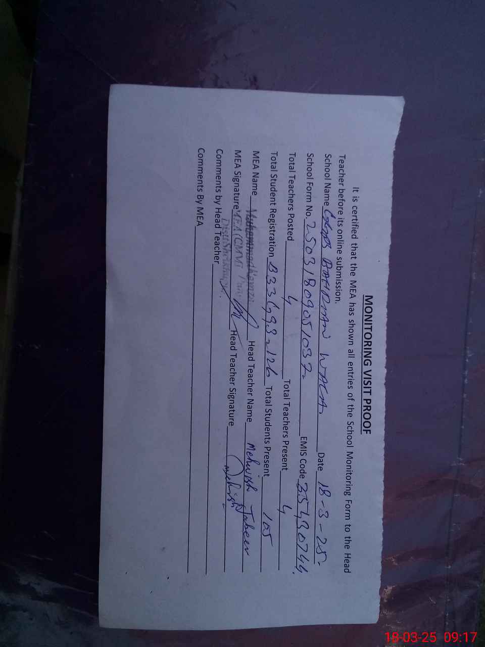 | EMIS Code: 35430744 | Name of School: GGPS BARIAN WALA | |||