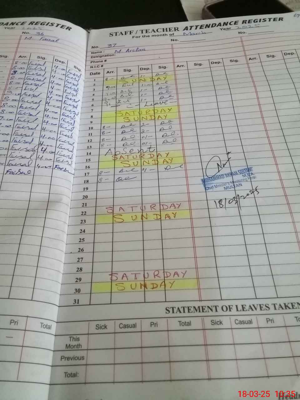 | 35**** | Sh**** Ha**** | PST | Regular | 0 | 0 | 0 | 0 | 0 | 0 | 0 | 0 | 0 | Exam Duty |