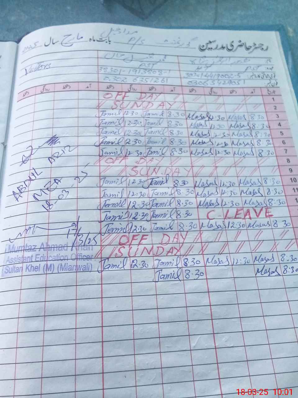 | Name: Ma**** UrRe**** Sh**** Designation: (School Headmaster's/Headmistress's) Pst Phone/Cell Number: 03**** |