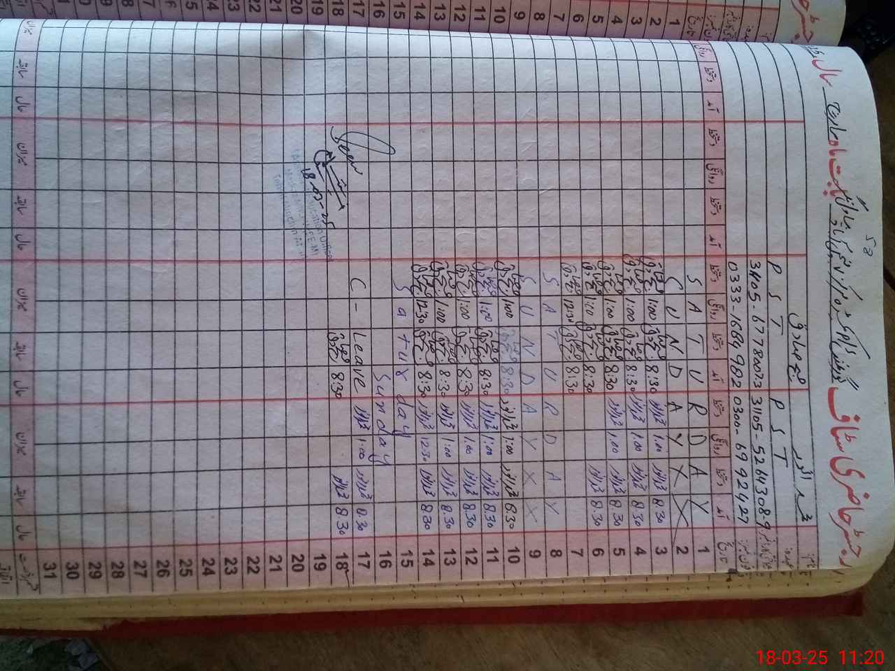 | CNIC | Full Name | Designation | R/C | Absence During Last Calender Month |