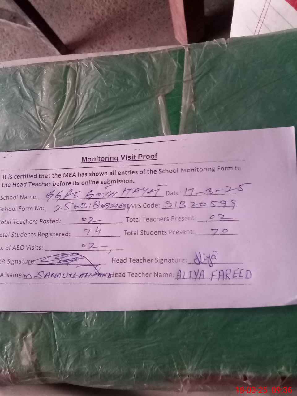 | EMIS Code: 31320599 | Name of School: GGPS GOTH HAYAT | |||