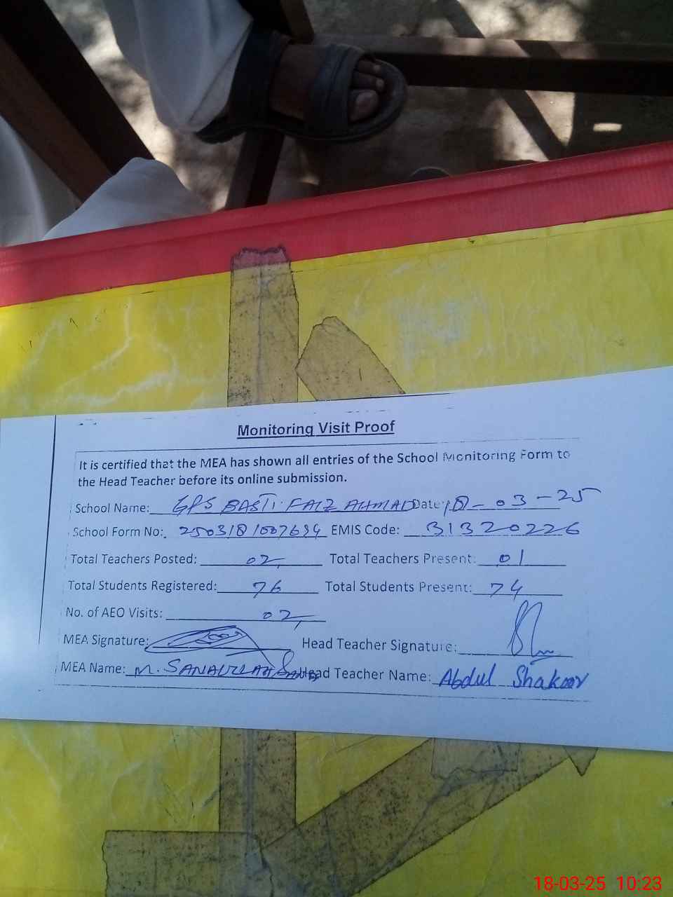 | EMIS Code: 31320226 | Name of School: GPS BASTI FAIZ AHMAD BOHAR | |||