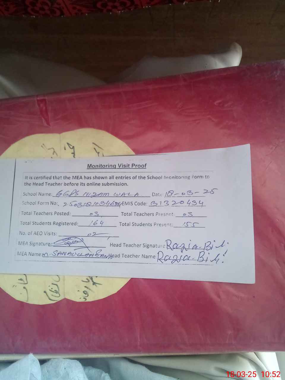 | EMIS Code: 31320434 | Name of School: GGPS NIZAM WALA | |||